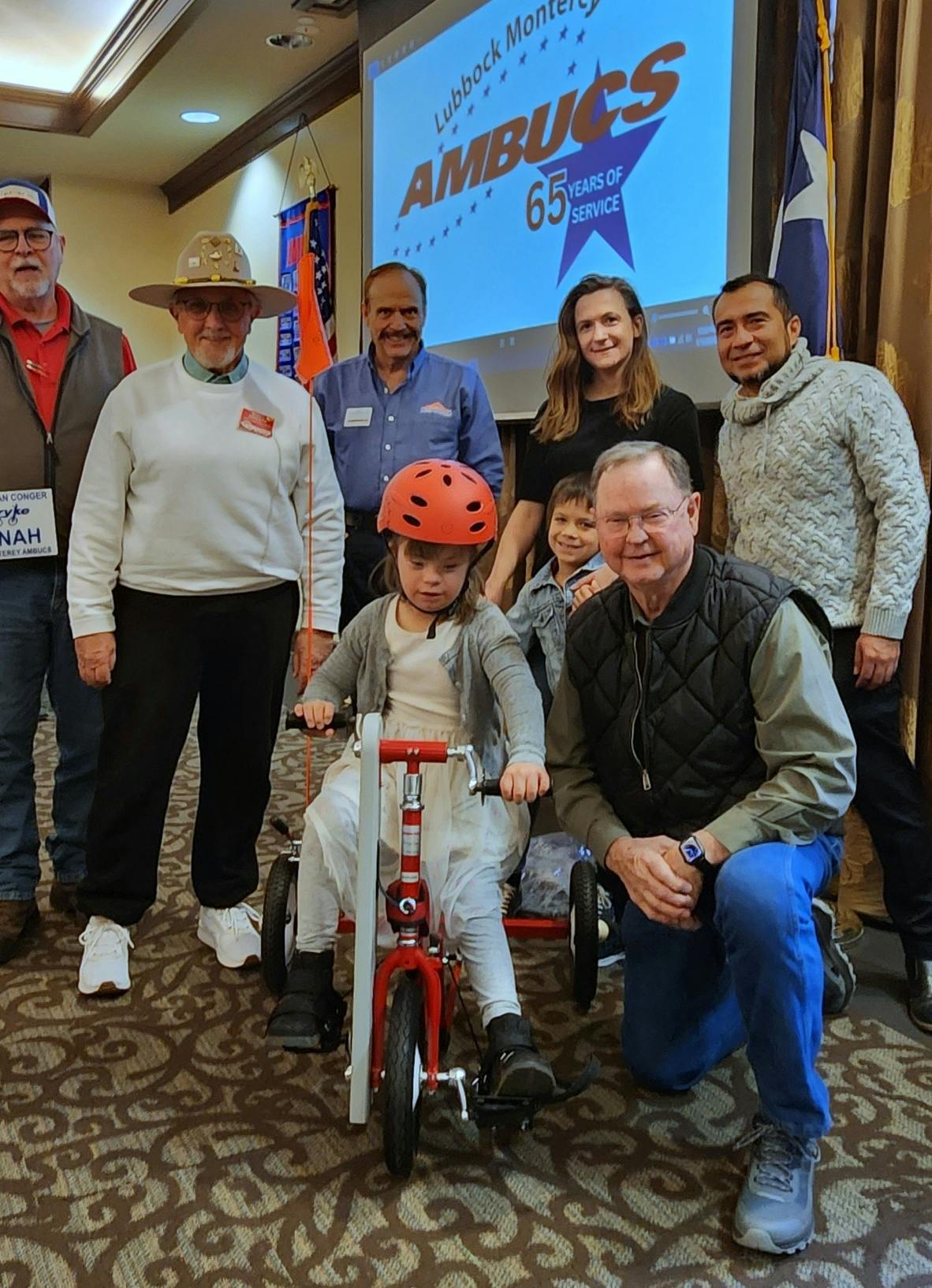 Lubbock Monterey AMBUCS had the joy of presenting 6-year-old Theo Ries with his very own Amtryke!...